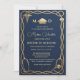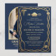 A premium, realistic mockup showcasing a navy blue and gold medical graduation invitation with both front and back views.