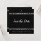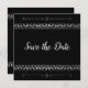 Elégante carte "save the date" avec garniture élégante en argent. Cette invitation pourrait être customisée pour toute célébration.