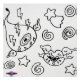 L'illustration graphique en ligne en noir et blanc gras est faite d'un globe oculaire et de lèvres flottant sur les ailes de l'éther parmi les spirales et les étoiles. Art de MLO pour la boutique Planet M13.