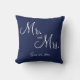 M. et Mme bleu mariage nautique coussins avec texte modifiable