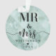 Célébrez la saison des vacances magique et de fête avec notre M. et Mme faits sur commande photo ornaments de vacances. Nos caractéristiques de conception élégantes modernes de vacances une belle conception verte en bon état miroitante élégante d'ornement de Noël de dessin géométrique de faux avec "M. et Mme" conception typographique ont placé au-dessus de l'ornement élégant de vert de menthe de faux. Le verso comporte un texte d'attente de photo pour vos propres nouveaux mariés épousant la photo de Noël. Toute l'illustration contenue dans ce M. vert en bon état élégant de Noël de vacances et Mme holiday photo ornament sont les illustrations originales tirées par la main par Moodthology. Vous pouvez customiser la taille des textes, la couleur des textes, la police et la disposition pour votre propre préférence personnelle de conception.