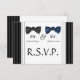 Cette carte RSVP de mariage présente deux graphiques en cravate arc en soie, des rayures de pin gris et noir et un graphisme plissé de chemise blanche. Très élégant. Facilement customisé. bleu royal ::ENVELOPES INCLUT :