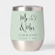 Coutume sauge verdoyante tumbler à célébrer avec à votre mariage ou anniversaire mettant en vedette "Mr & Mrs" dans un grand script élégant et une illustration de deux coeurs réunis. Ajoutez votre nom et votre date de mariage ci-dessous dans une élégante typographie moderne. Vous pouvez modifier la couleur arrière - plan verte sage si vous le souhaitez en modifiant l'outil de conception.