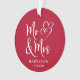 Un ornement photo rouge pour les jeunes mariés avec "Mr & Mrs" dans un élégant script blanc et une illustration blanche de deux coeurs réunis. Ajoutez votre nom et votre date de mariage. Ajoutez votre photo de mariage à l'envers.