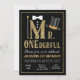 M. ONEderful anniversaire invitation avec cravate, chapeau haut et des mots de parties scintillant en canne et or sur un arrière - plan noir et or. Cet élégant petit homme Mr Onederful invitation d'anniversaire est facilement customisé pour votre événement en ajoutant simplement vos détails. Il s'agit d'un design imprimé sans parties scintillant réelle, arcs, etc.