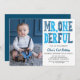 Invitation votre famille et vos amis pour célébrer le premier anniversaire de votre fils avec ces mignonnes Invitations photo M. Onederful. Cette conception comprend une photo unique du garçon d'anniversaire, script de typographie MR.ONEDERFUL en lettres bleues/navy et détails de la fête.