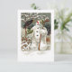 Cette magnifique carte postale allemande illustre un corbeau qui visite un bonhomme de neige entouré de paysages hivernaux. La simplicité et les couleurs donnent une belle image accrocheuse. Il est parfait pour tous vos besoins de Noël et de vacances.
