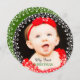 Ma première carte de Noël photo, faites un trou dedans et vous pourrez en faire un ornement de Noël pour votre arbre année après année.