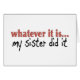 Celui qui il soit ma soeur l'a fait les vêtements et les T-shirts drôles de bébé. Passez le blâme à votre soeur avec ces chemises, boutons, casquettes et tasses hilares. Refroidissez les vêtements, les T-shirts et les cadeaux de rivarly d'enfant de mêmes parents.
