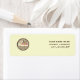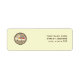 Étiquette de adresse avec l'illustration d'une douzaine de macarons français colorés dans une boîte cadeau beige avec un ruban brun délicat. Illustration : cercle intérieur avec arêtes à pétoncles. Recherchez les articles correspondants chez Jill's Paperie.