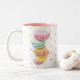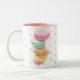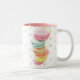 Illustration d'une tour délicatement équilibrée de macarons rose, vert, orange, marron et jaune. Une spécialité française et une carte ou un cadeau délicieux pour un ami spécial ou qui aime les sucreries.