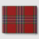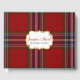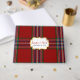 Livre d'hôtes mariage coloré réalisé dans le classique clan écossais rouge MacFarlane tartan plaid motif. Une zone de texte décoratif, sur la façade du livre, a un texte personnalisé prêt à être personnalisé. Des produits mariages correspondants sont disponibles.