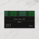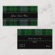 Modèle de carte de visite à l'allure majestueuse, réalisé dans un traditionnel Tartan Plaid écossais coloré, du clan MacKay. Une bande noire solide sur le plaid bleu et vert, a du texte de couleur blanche. Au verso se trouve une zone de texte noir et un accent plaid, en haut. Personnalisez tout le texte en fonction de vos besoins.