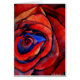 avec un design original de peinture aquarelle de Sacha Grossel de grande taille, rapprochée, macro style rose rouge avec des tons bleus. Cette fleur anglaise traditionnelle aux pétales cramoisis a un design coloré intense et lumineux qui traduit l'abstraction de la forme botanique et des thèmes de l'amour et de la passion.