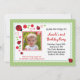 Invitation mignonne et d'amusement d'anniversaire de photo avec un thème de Madame Bug. Petite Madame Bugs de caractéristiques avec les fleurs et le feuille autour. Un cadre pointillé tient l'image de la fille pour un contact doux personnel et mignon supplémentaire. Un arrière - plan de bord et de plaid de feston ajoute un contact chic. Grand pour une fille d'amusement. Il est facile assortir la palette de couleurs avec les approvisionnements principaux de partie de courant. Ajoutez vos propres mots.