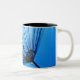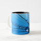 Une belle, lumineuse image bleue des gouttelettes d'eau sur une graine de pissenlit intitulée "Madame Sings The Blues" encourage cette tasse de café.