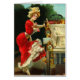 Une carte vintage avec une dame et son chariot horseless.