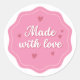 Ajoutez une touche de charme à vos cadeaux, forfaits ou objets personnels avec cet adorable sticker rose "Fabriqué avec amour". Doté d'un arrière - plan rose doux, d'un coeur délicat et d'une typographie élégante, cet autocollant est parfait pour les anniversaires, les mariages, ou toute occasion spéciale où vous voulez montrer plus de soin et d'amour. Cochez-le sur des enveloppes, des boîtes-cadeaux ou des effets personnels pour que chaque détail se sente bien pensé et chaleureux