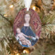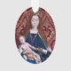 Dans ce détail du centre d'une peinture flamande, la Sainte Vierge Marie (BVM) et le nourrisson Jésus sont projetés sur une tapisserie d'honneur ornée. Bruges, ville d'origine de la peinture, fut l'un des principaux centres de textiles tissés européens au XVe siècle. Les tapisseries occupent une place importante dans les peintures flamandes contemporaines de la fin du Moyen-Âge et de la Renaissance du Nord. Intitulée Virgo inter Virgines, cette oeuvre d'art a été réalisée par un peintre anonyme surnommé par les chercheurs Le Maître de la Légende de Saint-Lucy (fl. ca. 1485). Selon des sources archivistiques, la peinture a été installée dans l'église de Notre-Dame (Néerlandais : Onze-Lieve-Vrouwekerk) à Bruges, Belgique, en 1489 sur l'autel de la Chambre rhétorique des Trois Saints (De drie Sanctinnen). + Vous préférez le fond vert et rose ? Masquer l'image de la tapisserie dans l'outil Design. + Crédit d'image (M 070) : Détail de Virgo inter Virgines [en latin; La Vierge parmi les vierges en français; La Vierge parmi les vierges en anglais], par The Master of the Legend of St. Lucy (fl. c. 1435-1506/1509), huile sur panneau en chêne, 67,3"x42,5" (171 cm x 108 cm), ch. 1488, Musées royaux des Beaux-Arts de Belgique, Bruxelles, fr. 2576. Source : Wikimedia Commons {PD-Art|PD-Old-100}. Le fichier image a été identifié comme étant exempt de restrictions connues en vertu de la loi sur le droit d'auteur, y compris tous les droits connexes et voisins.