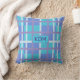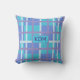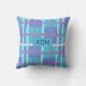 coussin moderne rayé/madras dans une belle palette bleue, violet et blanche.