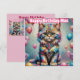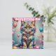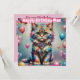Un chéri fêtant l'anniversaire de Mae. Le Greeting sur la carte est Happy Birthday Mae". Sur le dos de la carte se trouve une petite version du même chaton, avec beaucoup de place pour écrire un message. Fabriqué avec l'aide d'AI Bing (CoPilot).