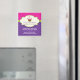 Cet aimant de cupcake clair et capricieux attire certainement l'attention. Le cadre couleur crème contient le cupcake au chocolat recouvert de cerise, recouvert de glaçage rose et blanc, ainsi qu'un nom d'entreprise et une description. Le tout est posé contre un chevron rose coloré et un arrière - plan de pois pourpre. Les coordonnées de l'entreprise sont indiquées ci-dessous. Parfait élément promotionnel fantaisiste pour un magasin de cupcakes, une boulangerie ou toute personne qui traite de sucreries. Disponible en couleurs alternatives avec des produits correspondants.