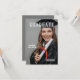 Magazine faire-part de graduation esthétique avec les détails de l'invitation de la fête de graduation sur l'inverse.