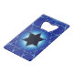Une simple image fractale aux tons bleus représentant plusieurs instances d'un David magen (Étoile de David) formé par des lignes croisées en verre ou en cristal, l'étoile centrale est remplie de bleu foncé. Ajoutez votre propre texte.