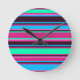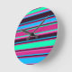 Ajoutez une pop de couleur à n'importe quel espace avec cette horloge murale rayée moderne! Doté d'une bande horizontale audacieuse en magenta, en aqua et en bleu, ce design dynamique apporte une énergie ludique aux cuisines, bureaux ou dortoirs. Un cadeau parfait pour les amoureux de couleurs ou toute personne qui aime la décoration audacieuse et moderne.