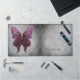 Ajoutez une touche élégante à votre espace de travail avec un Tapis Damas à Papillon Bijoux. Le design de tapis de bureau comprend un papillon vibrant contre un motif vintage damassé vieilli et la personnalisation du nom. Cadeaux supplémentaires disponibles avec ce design.