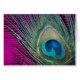 Photographie d'une plume de paon. L'arrière - plan rose vif aux lignes sombres crée un effet très soigné.