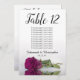 Ces belles cartes de numéro de table faciliteront la recherche de sièges à votre réception de mariage. Elles présentent un design simple mais élégant, avec des lettres de calligraphie script et un seul rose à long tige violet, magenta ou baies de couleur cassis sur son côté réfléchissant dans l'eau. La carte comprend un tableau de sièges avec 10 noms. Il y a aussi de la place pour les noms du couple et la date du mariage. Cette carte est disponible dans une variété de tailles et est plus grande que nos cartes de numéro de table standard.