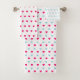 Mignons coeurs rouge magenta et bleu clair turquoise sur des serviettes de bain arrière - plans blanches. Coeurs modernes aux couleurs turquoise et magenta !