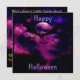 Plein personnalisable Magenta lumineux et ciel mauve avec pleine lune et chauves-souris sur le devant, sorcière sur le dos, Invitation de la fête d'Halloween - Costume de fête amusant pour tout le monde.