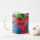 motif Abstrait avec magenta vif et tourbillons bleus de couleur. Cette tasse de café haut de gamme a une tache pour votre monogramme customisé.