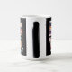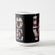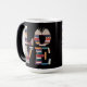 This Morphing Mug displays a stylized typographic design spelling out the word LOVE using stacked hardcover books on a black background. The letter L is made from dark blue and purple books, the O is created with red and orange books, the V is formed with yellow and teal books and the E is constructed with green and purple books. The LOVE books image is on both sides of the mug. The Morphing Mug shows the image when you put a hot drink in the mug. The mug is a fifteen ounce mug. This mug meets the FDA requirements for food and beverage safety.