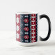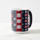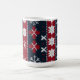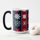 Cette tasse à café présente un design d'inspiration nordique dynamique avec une combinaison de flocons blancs, de coeurs rouges et de motifs géométriques, sur fond bleu et rouge profond. Le style tricoté motif évoque un esprit de vacances chaleureux et douillet, ce qui en fait un choix parfait pour les occasions de fête ou les matins d'hiver.