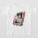 A beautiful fantasy princess holding a glowing crystal, emerging from a cracked stone frame surrounded by colorful flowers. Perfect for fairy-tale lovers and magical art fans