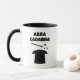 Magic wand and hat custom magician coffee mug. Cute black and white drink cup design for performer of tricks and illusions. Personalize with custom quote or performer name. Examples Abracadabra poof! Sim sala bim! Presto!