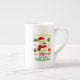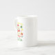 jolie porcelaine, bonne dimension effet brillant bien dans l'ensemble. Le motif et les couleurs sont réussis.Je trouve néanmoins dommage de ne pas occuper tout l'espace avc le motif car la partie rouge au dos de la tasse est trop présente et pas intéressante visuellement.