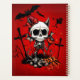 Magie citrouille et Amusement d'os. Au milieu d'un cimetière sombre, un joyeux squelette de dessin animé se dresse sur un tas de pierres patinées. Le squelette, avec ses membres osseux et son grain espiègle, porte un arc rouge frappant autour de son cou et a pointé des cornes de diable qui lui donnent une expression ludique mais espiègle. A sa droite, il tient fièrement une lanterne en forme de citrouille sur un long bâton, dont la lumière chaude rayonne doucement dans l'environnement. L'arrière - plan du design est un rouge vif qui souligne l'esprit festif d'Halloween.