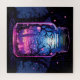 Notre série Magic in a Jar puzzle présente de beaux paysages et des créatures dans un bocal. Celui-ci montre une forêt éffrayante avec des lobs aliens roses poussant des arbres morts. Une lune est suspendue dans un ciel au-dessus de nuages violets, roses et jaunes.