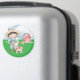 Magnet mit Junge, Kälbchen und roter Scheune auf der grünen Wiese. Erhältlich in drei Größen.