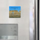 Une photo de Monument Rock qui est lumineux et coloré avec le ciel bleu qui est sur un aimant carré.