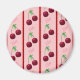 Adorable dessin de cerises répétées sur arrière - plan rayé rose.