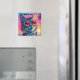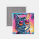 Aimant à l'image d'un chat de plage avec lunettes de soleil et couleurs tropicales vives et joyeuses.