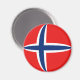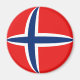 Le drapeau de la Norvège a été soigneusement fixé à la forme circulaire de cet aimant. Une façon décorative de promouvoir la culture norvégienne.