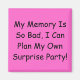 Ma mémoire est si mauvaise, je peux planifier ma propre fête surprise.