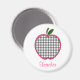 Un aimant pour les enseignants avec l'illustration d'une pomme gris en vichy charbon avec garniture rose. Texte personnalisable en dessous : "Enseignant". Recherchez d'autres articles en vichy pomme dans la catégorie "Pommes" du magasin The Pink Schoolhouse.