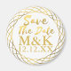 La date est fixée ! Maintenant, il faut informer tous vos invités de la date de votre mariage. Ajoutez vos initiales et la date de votre mariage à ce magnet simple mais élégant en faux or pour Sauvegarder la Date - vous pouvez choisir entre un modèle carré ou rond. Félicitations !